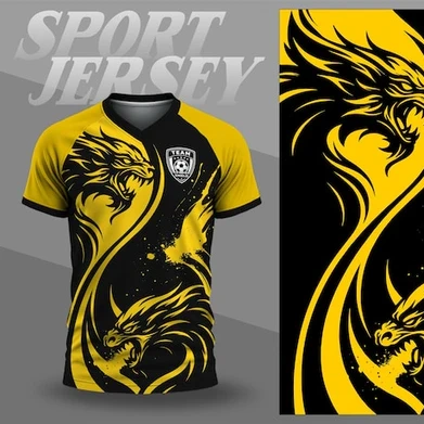 Yellow and black dragon football jersey set with bold sublimation print. Customise with player name, number, team logo, and sponsors. Breathable, lightweight, quick-dry fabric designed for clubs, schools, colleges, academies, and tournaments. Strong stitching, long-lasting colors, and available in all sizes with fast delivery across Nepal.